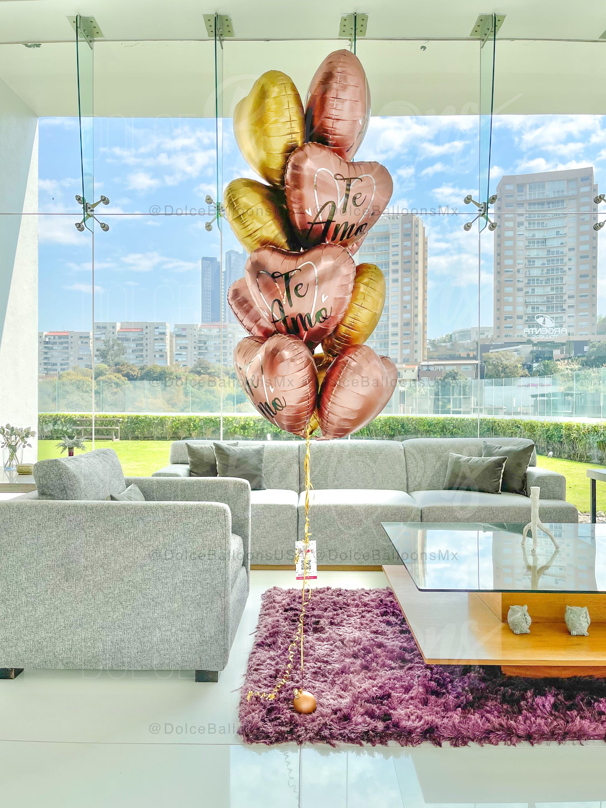 Ramillete de Corazones Mixtos con helio que complementan perfectamente tus decoraciones.