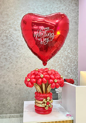 Un corazón flotante con mensaje personalizado acompañado por este ramo de flores de globos en forma de florero ideal para colocar sobre mesa o escritorio se convierten en esa combinación perfecta para regalar en San Valentin pero también se puede personalizar para cualquier otro tipo de celebración.