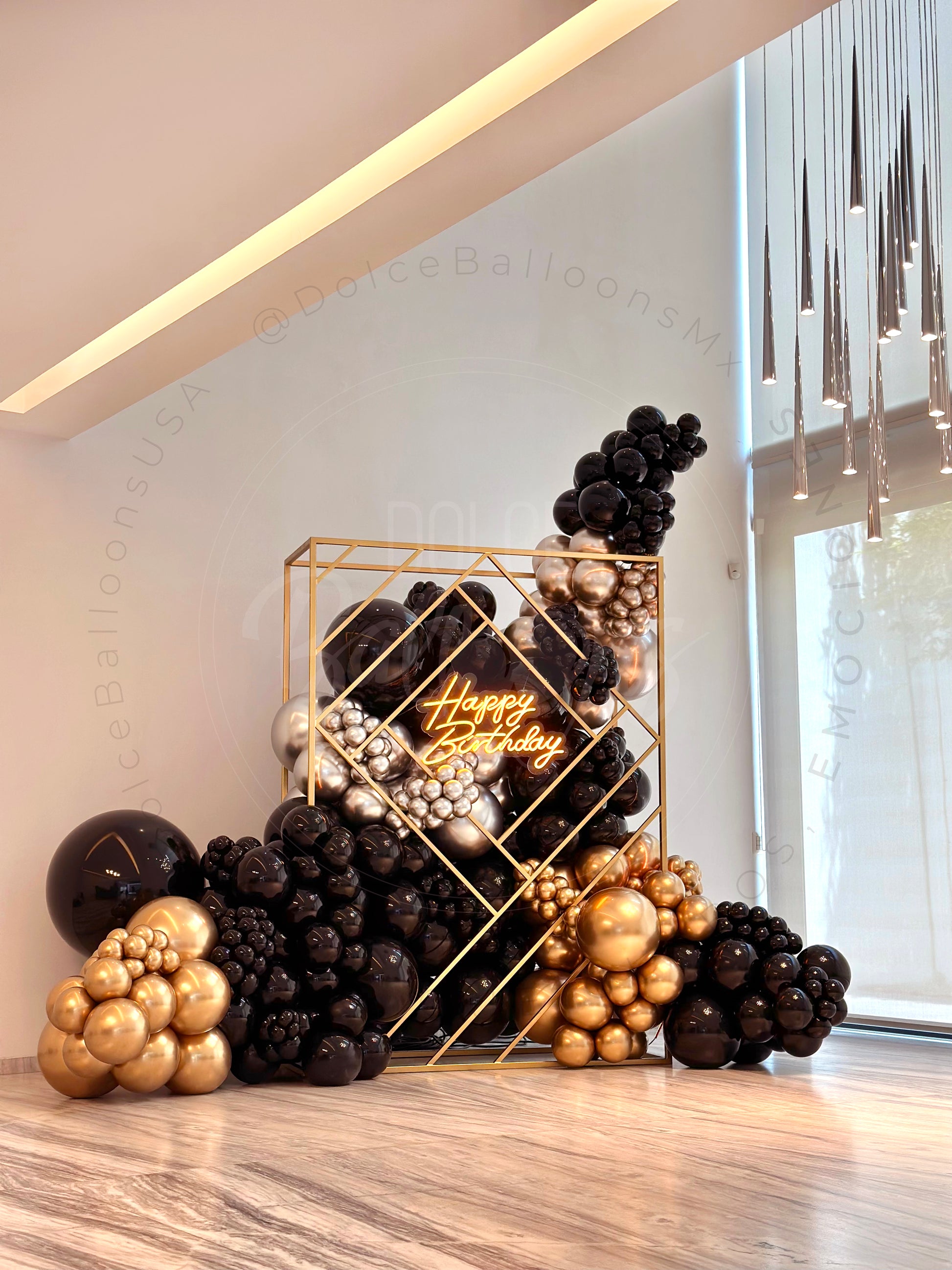 Este Set Decorativo cuenta con una estructura metálica, letrero neón y guirnalda de globos dentro y fuera de la estructura que aportan un aspecto único a este diseño.