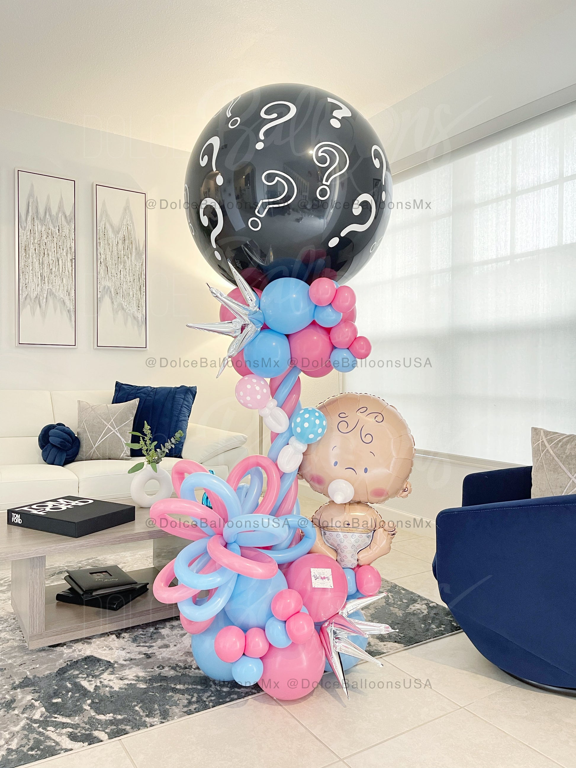 Diseño que nos permite explotar el globo de la parte de arriba dejando ver Confetti y Polvo Holli del color rosa o azul y queda el resto del diseño de pie luego de este momento tan especial.